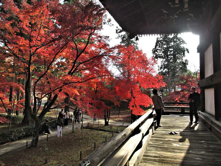 本堂前の紅葉はますます終わって来て、葉の落ちた枝も目立ってきました。本堂裏はこの場所が一番の撮影スポットです。