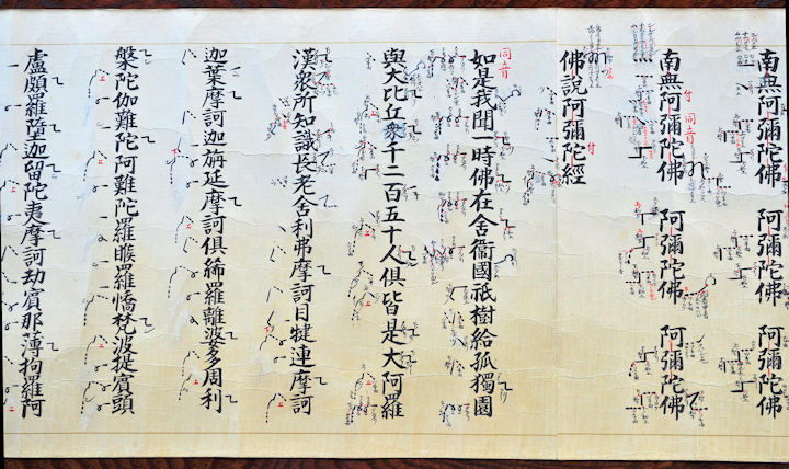 慈覚大師(794-864)は、遣唐使として渡唐された時、五台山で大師は生身の文殊菩薩にお会いになり、極楽世界の八功徳池の波の音に唱和する妙なる「引声阿弥陀経(引声念仏)」を授けられたといいます。帰国後、大師の伝えられた引声は比叡山を中心に修せられましたが、現在、年中行事として行っているのは真如堂などわずかです。