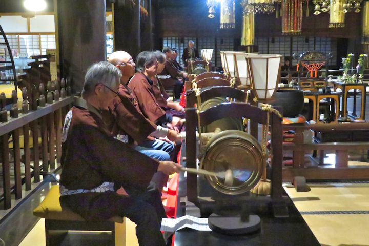 5日からのお十夜法要を前に、今夜から鉦の練習が始まりました。講の人たちが鉦を叩くのは1年ぶりなので、本番を前に練習をして、少し揃うようになってからお十夜の開闢法要を迎えます。