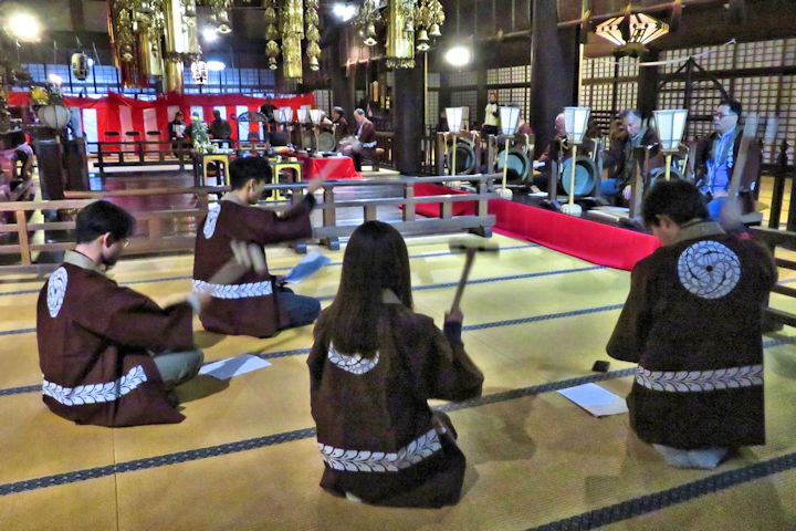 新人の皆さんは、今日はエアーで鉦を叩いておられました。