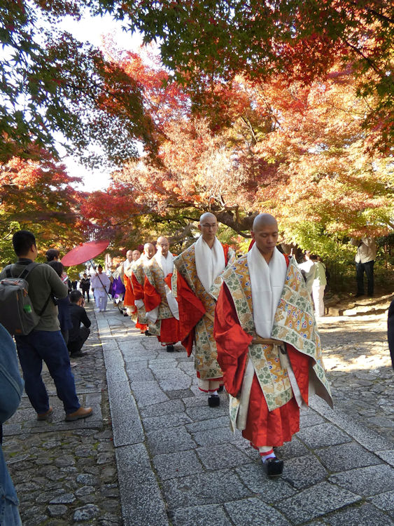 2時からは、色付いたもみじに満ちた境内を、ご詠歌・稚児・園児・僧衆の行列が練り歩きました。