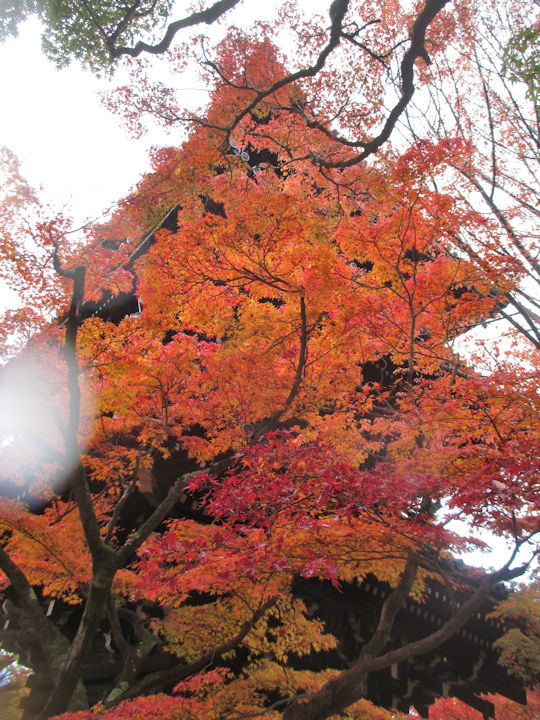 落ち葉がたくさん積もったので、あちこちの落ち葉掃除をしました。また総門前の酔芙蓉も切り戻しました。