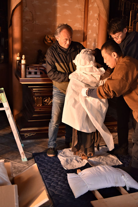 緩衝材を付け、その上を白布で覆われて、いざ旅立ち! いってらっしゃい! お帰りをお待ちしています!