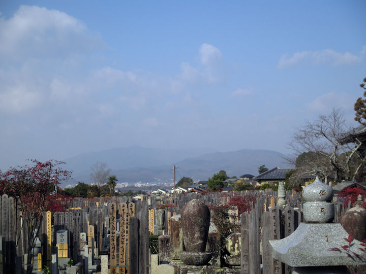 真如堂の墓地から西を眺めたら、愛宕山などの西山が少し霞んでいました。これって、黄砂のせいでしょうか?