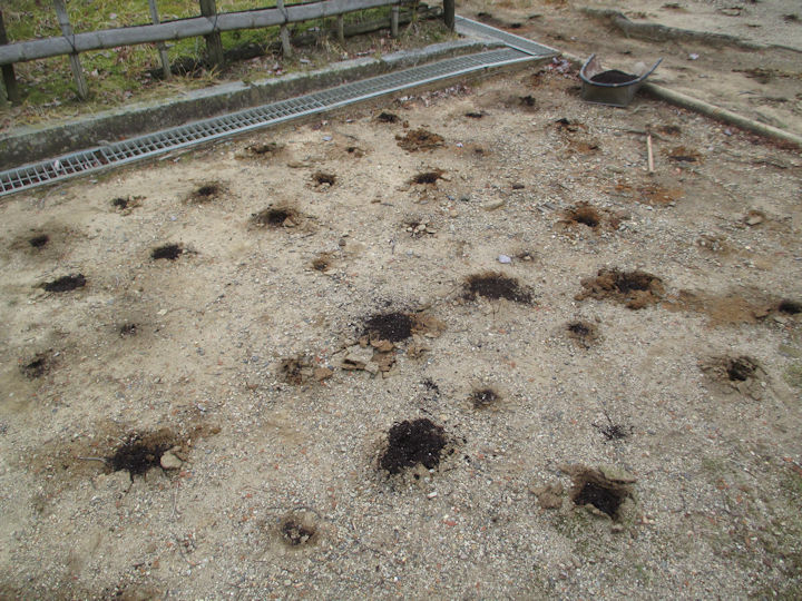 このボコボコした穴は何かおわかりになりますか? モグラ? いえいえ、植木屋さんのお仕事です。