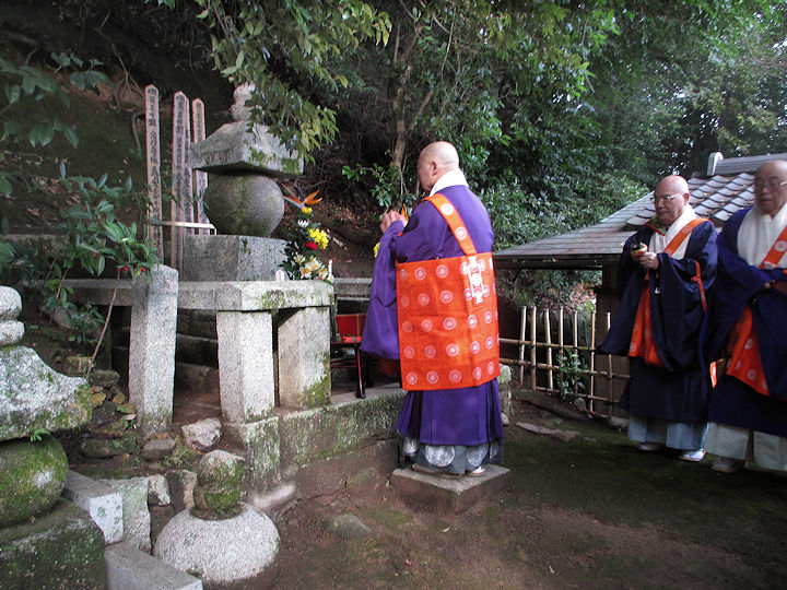 今日は真如堂の全僧侶が換骨堂で法要を勤め、その後、供養塔前で回向をしました。雪や雨のこともありましたが、今日は冷え込みも緩んで、清々しい女院忌となりました。