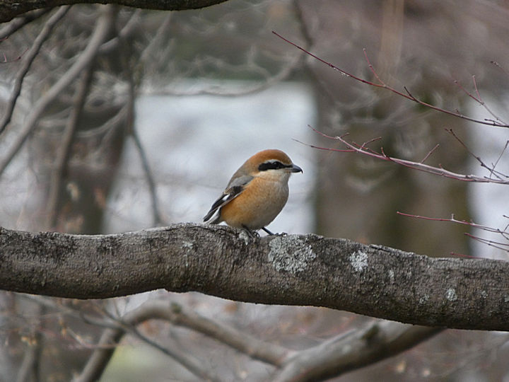 写真は雌です。「百舌」と書きますが、他の鳥の鳴き声を真似るのが上手だそうで、鴬などの鳴き真似もするそうです。でも、それは雄だけ。