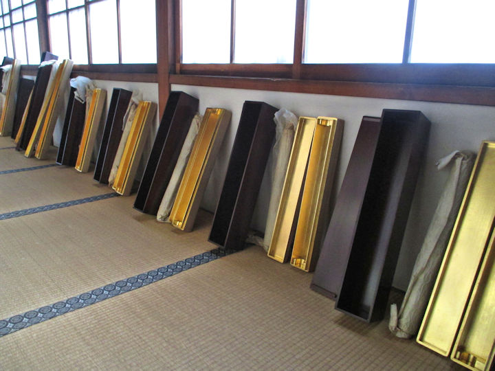 掛け軸を長持ごと蔵から出して中を確認すると、春慶塗りのような箱の中にさらに桐箱が入っていて、その内側には金箔が施してあり、肖像の掛け軸が入っていました。全部で10幅以上もありました。