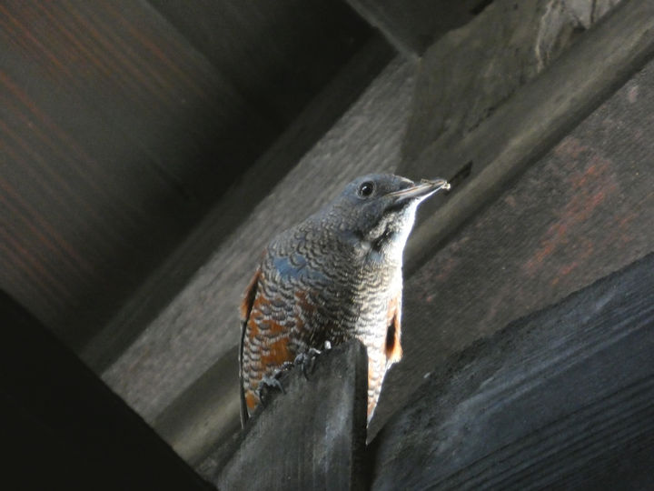 最近、本坊のまわりで鳥の声がよく聞こえます。本坊の煙抜きのところに留まって糞を落としたり、庭木に留まっていたり。書院や本堂の中にも入ってくることがあるそうです。かなりフレンドリーです。口に何かをくわえたまま囀っています。